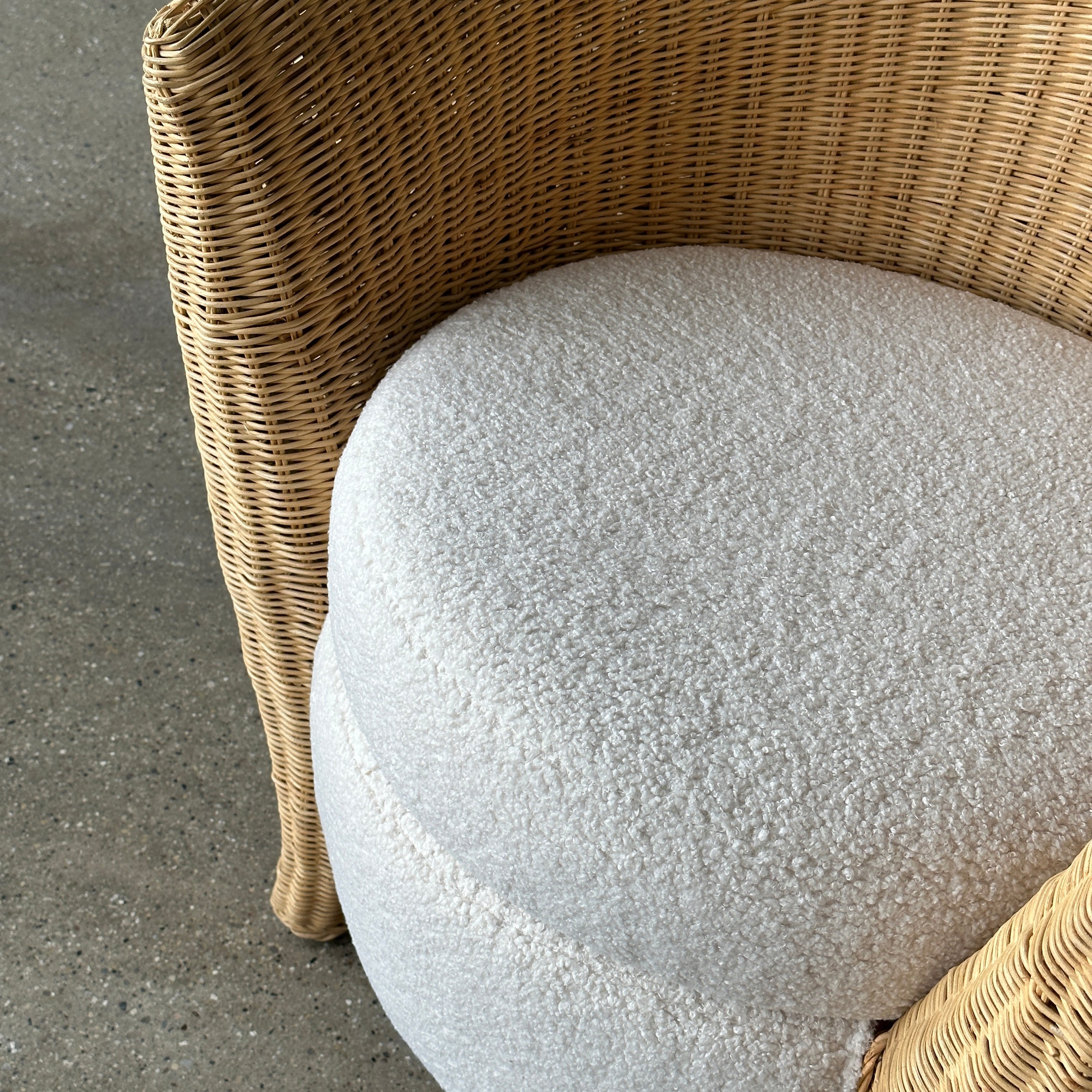 Sculptural Wicker Tub Chairs in Boucle