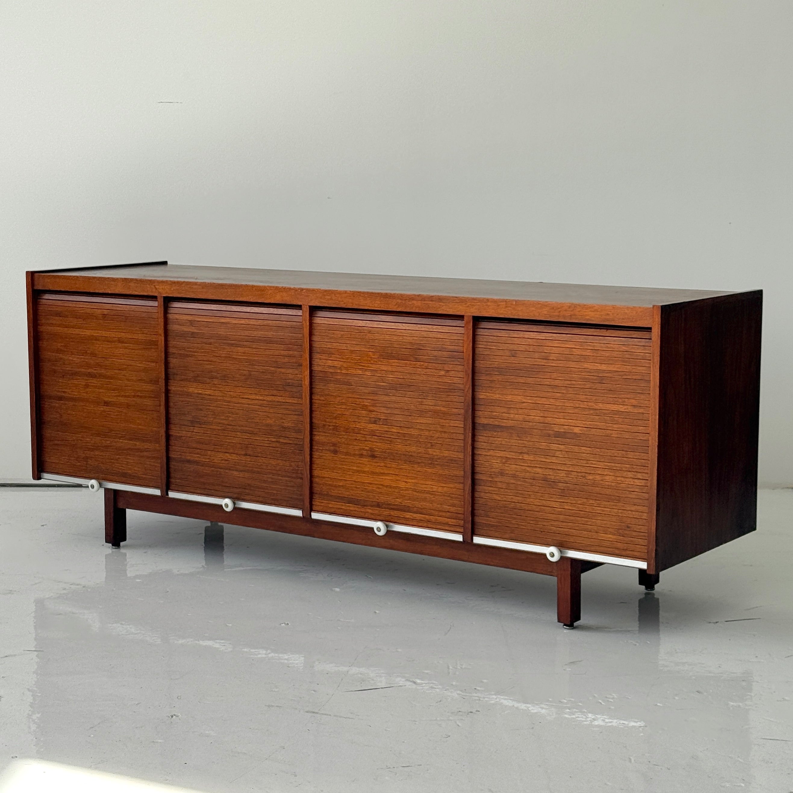 Mid Century Walnut Roll Up Credenza